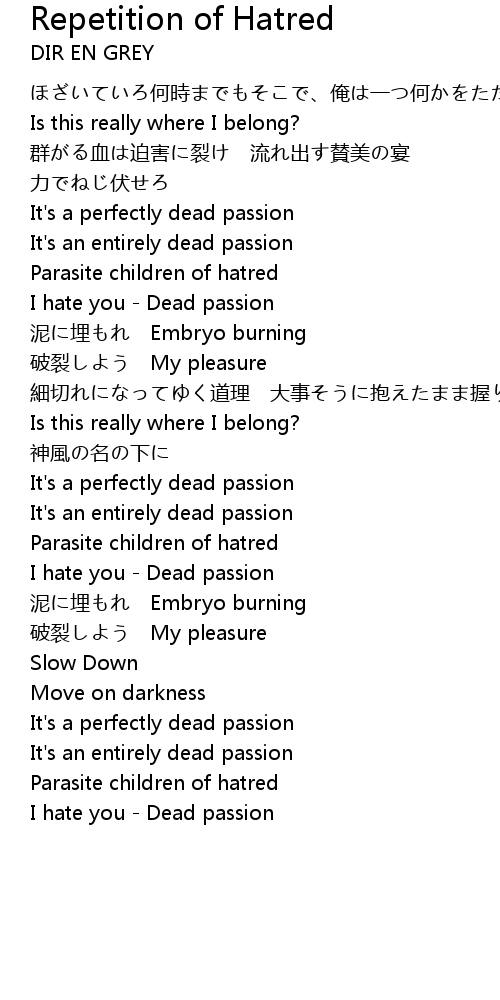 | Song | Repetition of Hatred |