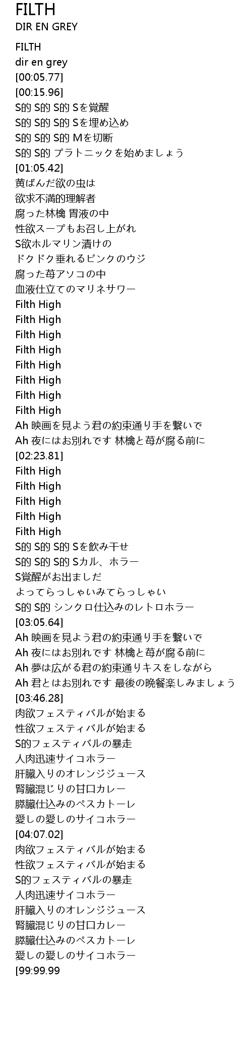 | [01:45.33] | Filth High |