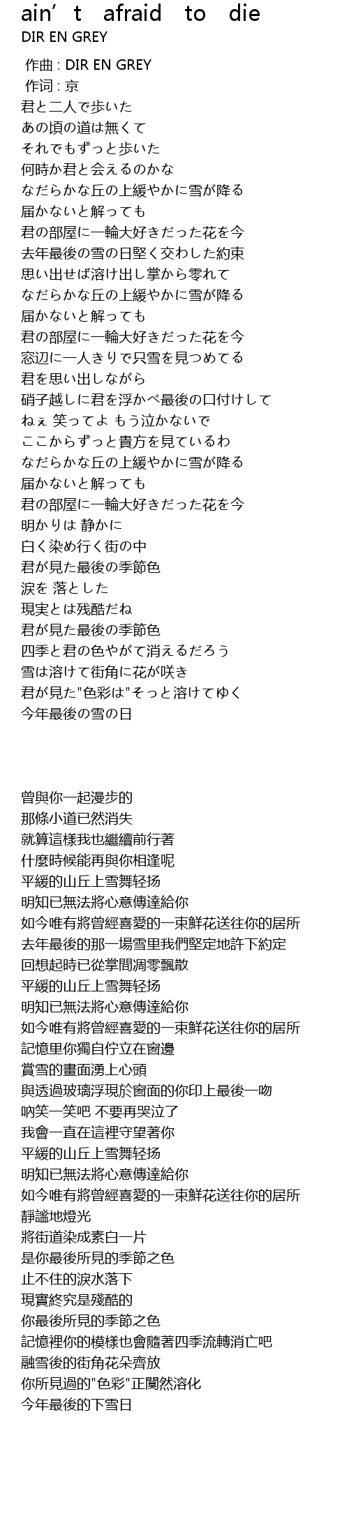 | [00:00.00] | zuò qǔ : DIR EN GREY |