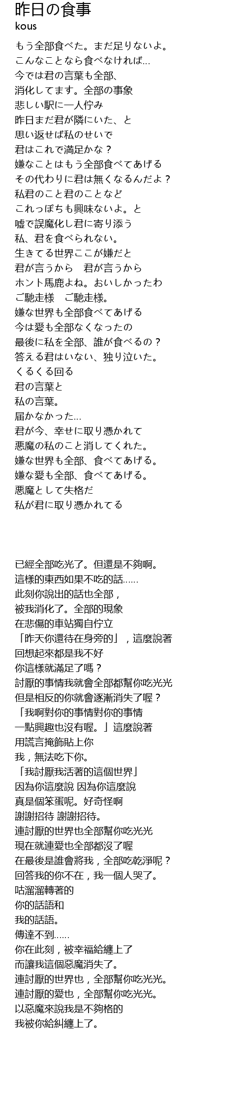 | [03:01.66] | 嫌な愛も全部、食べてあげる。 |