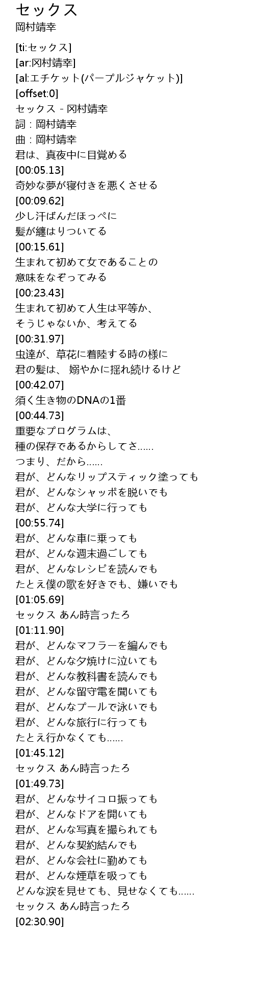 | [00:00.37] | セックス - 冈村靖幸 |