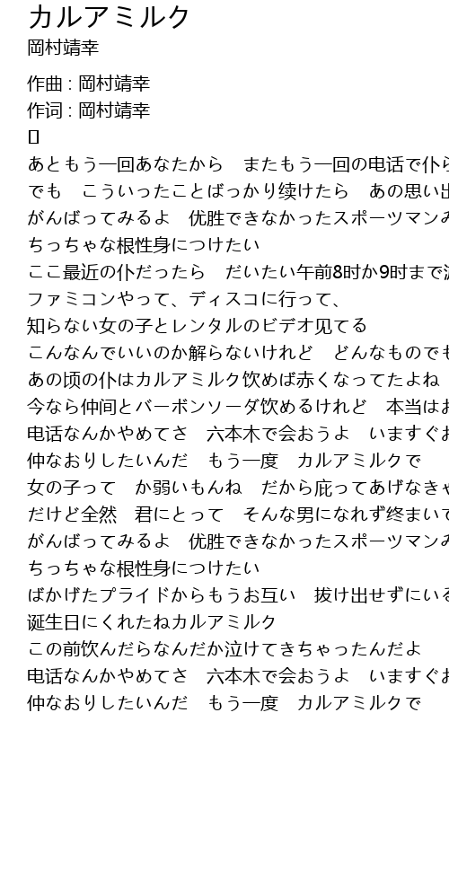 | 仲なおりしたいんだ もう一度 カルアミルクで |
