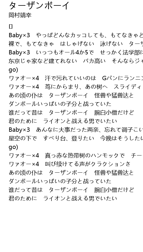 | 谁だって昔は ターザンボーイ 腕白小僧だけど | |