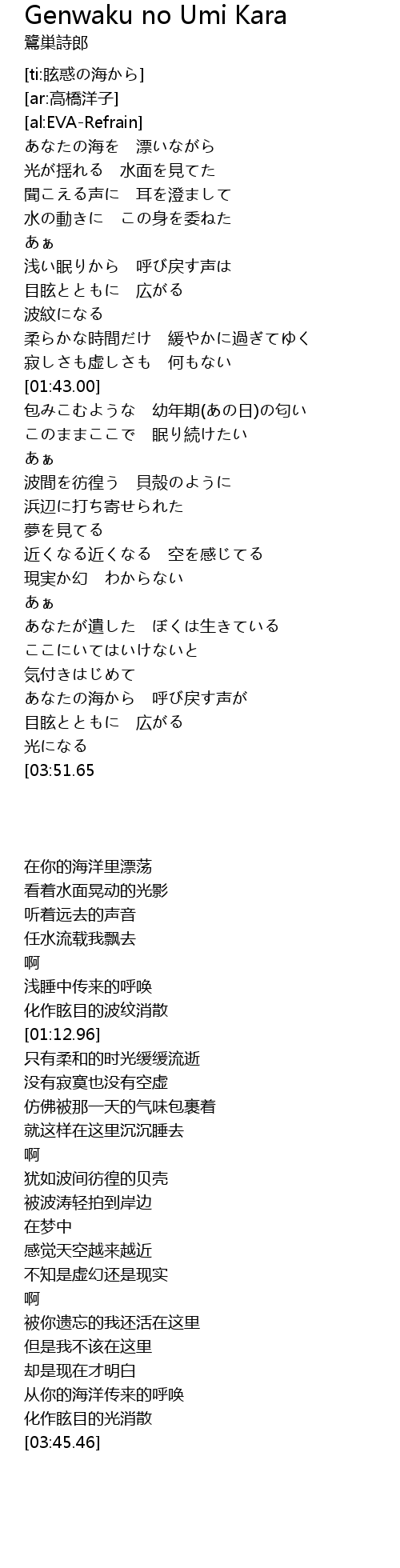 | [02:16.81] | 波間を彷徨う 貝殻のように |