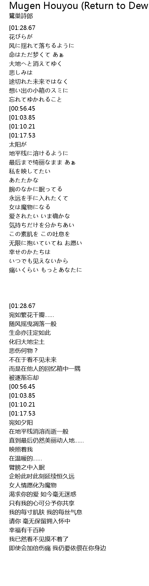 | Song | Mugen Houyou (Return to Dew Mix) |