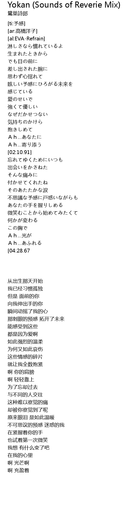 | [03:21.29] | 不思議な予感に戸惑いながらも |