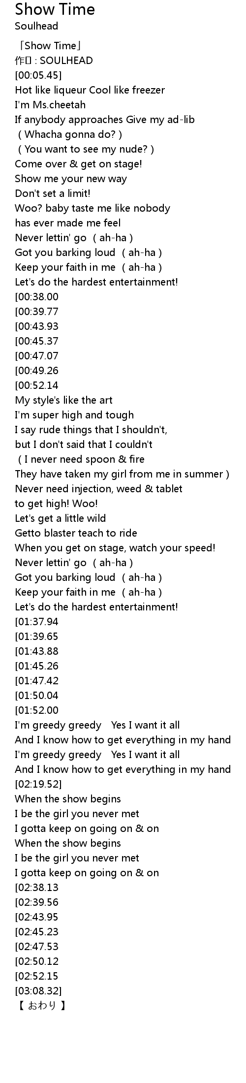 | [00:01.45] | 「Show Time」 |