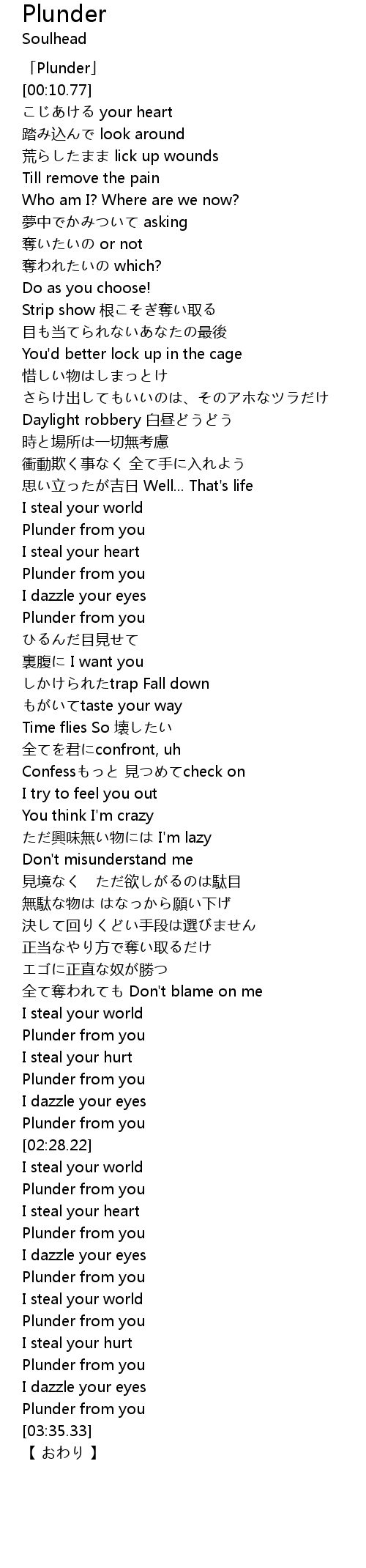 | [00:02.77] | 「Plunder」 |