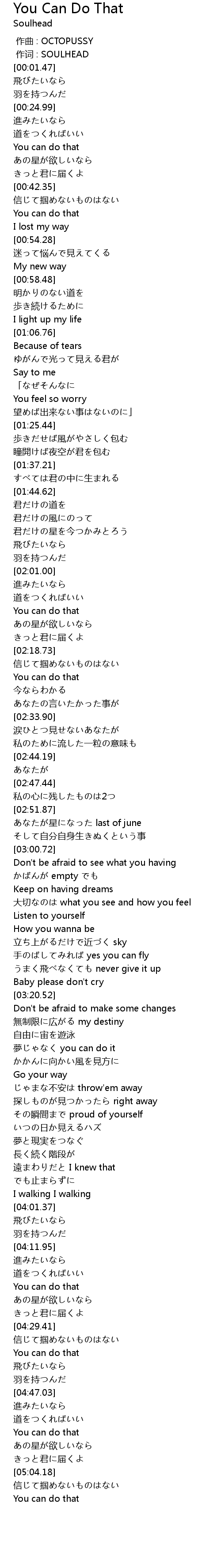 | [03:27.30] | 夢じゃなく you can do it |