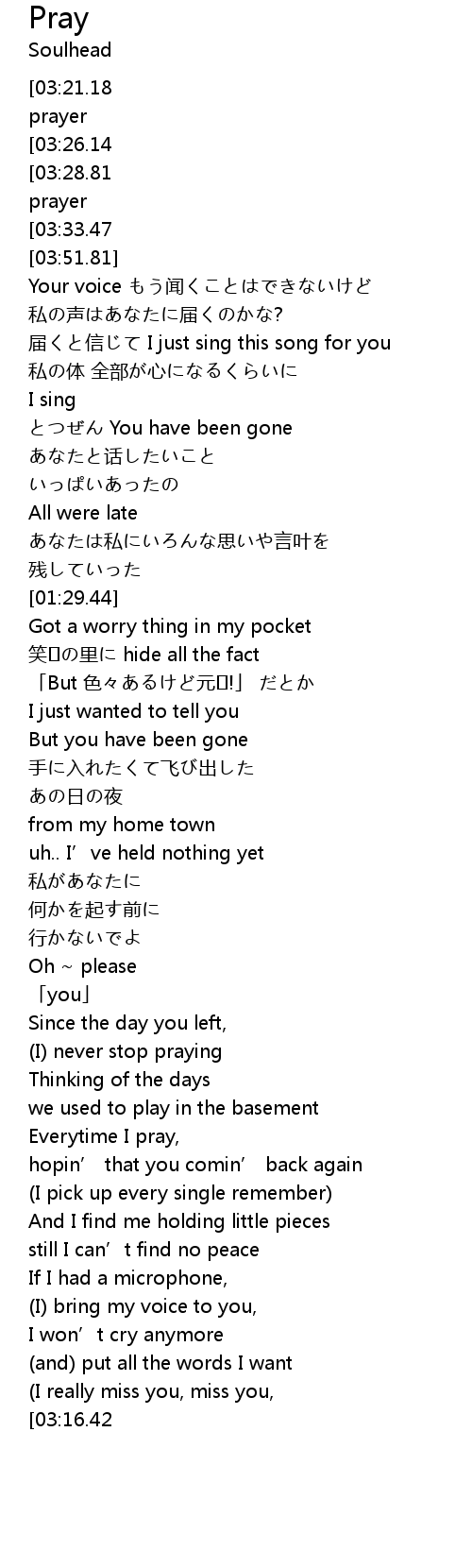 | [03:19.98][03:16.42][03:12.57] | everyday & night I pray) |