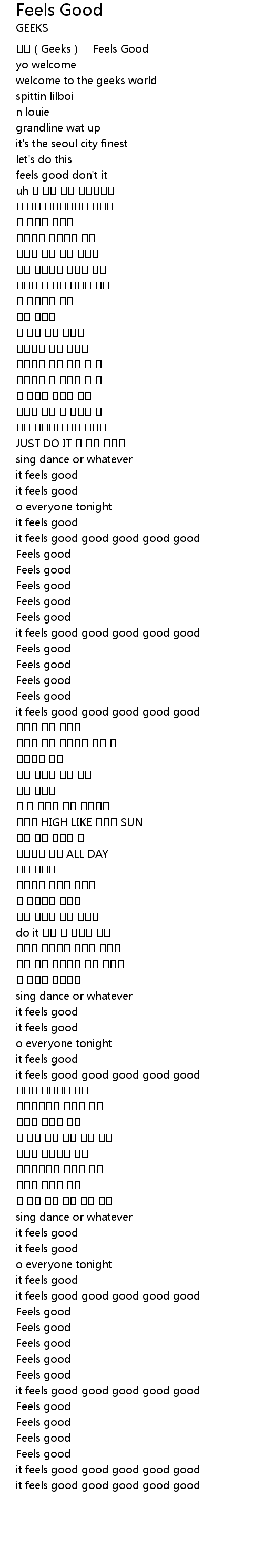 | [00:01.07] | 긱스(Geeks) - Feels Good |