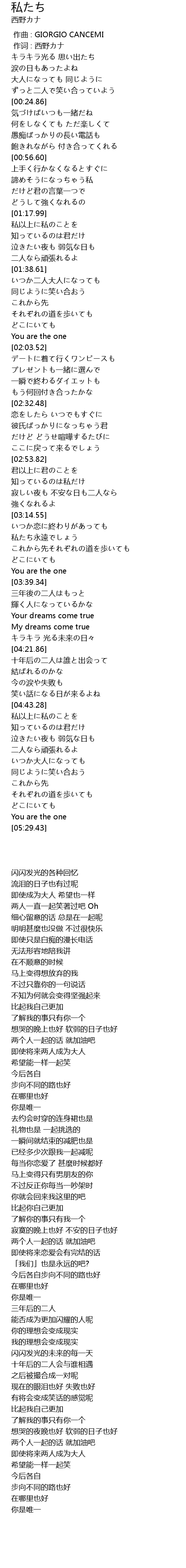 | [04:16.20] | キラキラ 光る未来の日々 |