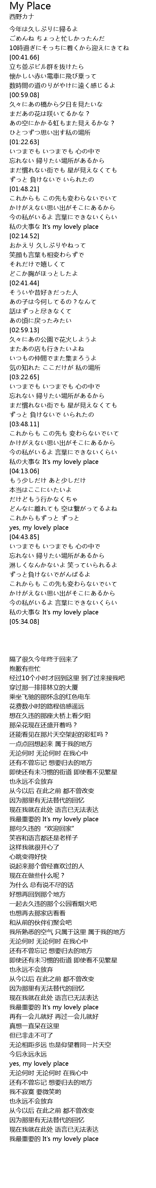 | [05:24.99] | 私の大事な It's my lovely place |