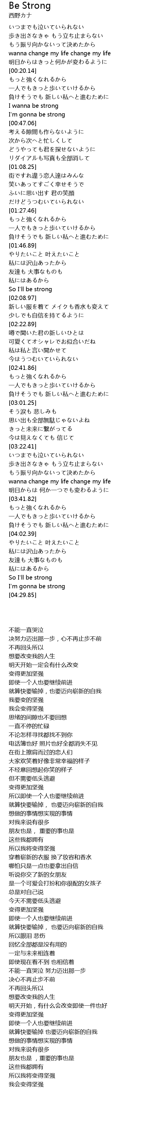 | [00:39.04] | I wanna be strong |