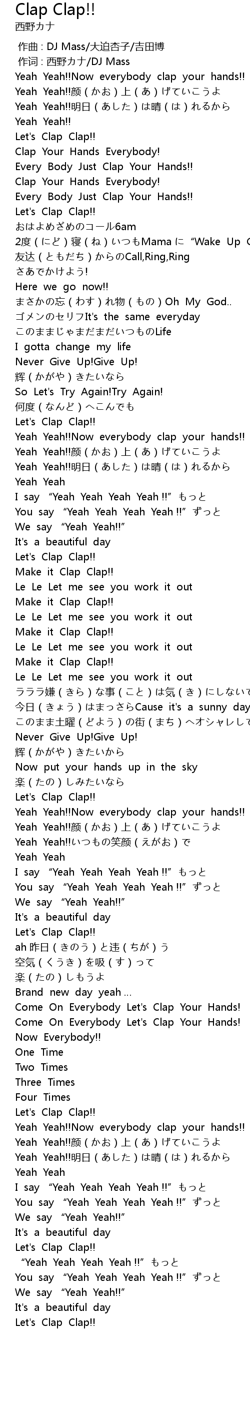 | [00:14.90] | Every Body Just Clap Your Hands!! |