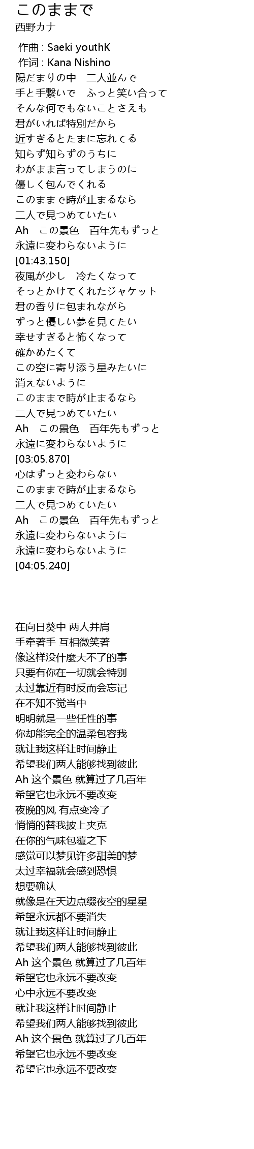 作词 : Kana Nishino |