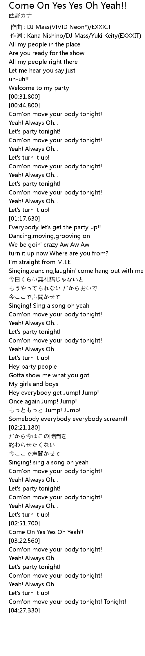 | [02:59.500] | Come On Yes Yes Oh Yeah!! |