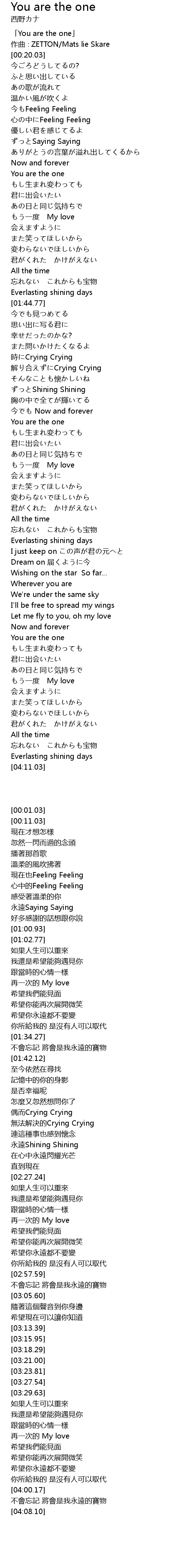 | [00:01.03] | 「You are the one」 |