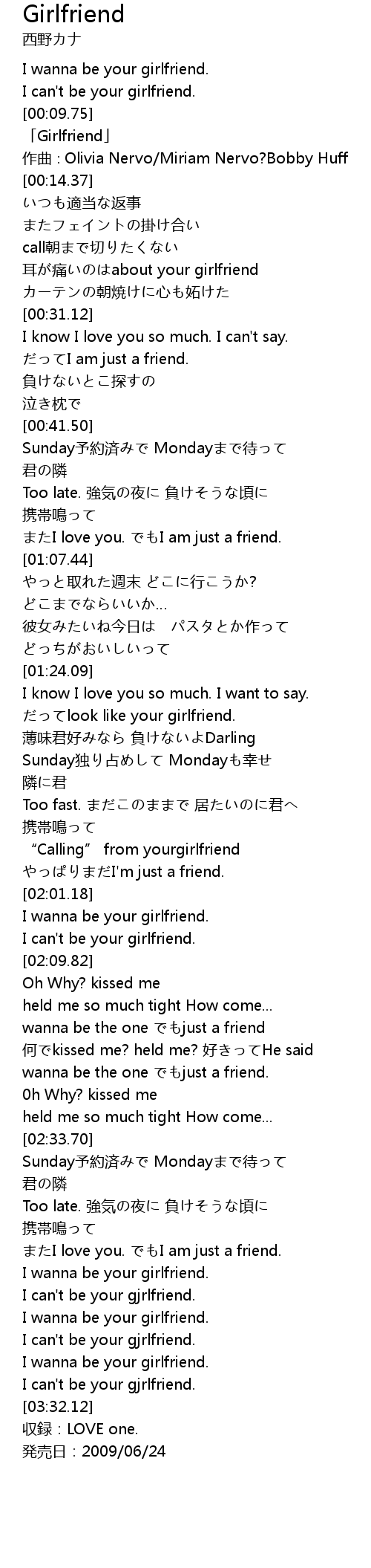 | [03:19.67] | I can' t be your gjrlfriend. |