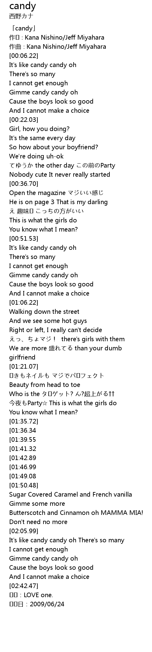 | [00:01.22] | 「candy」 |