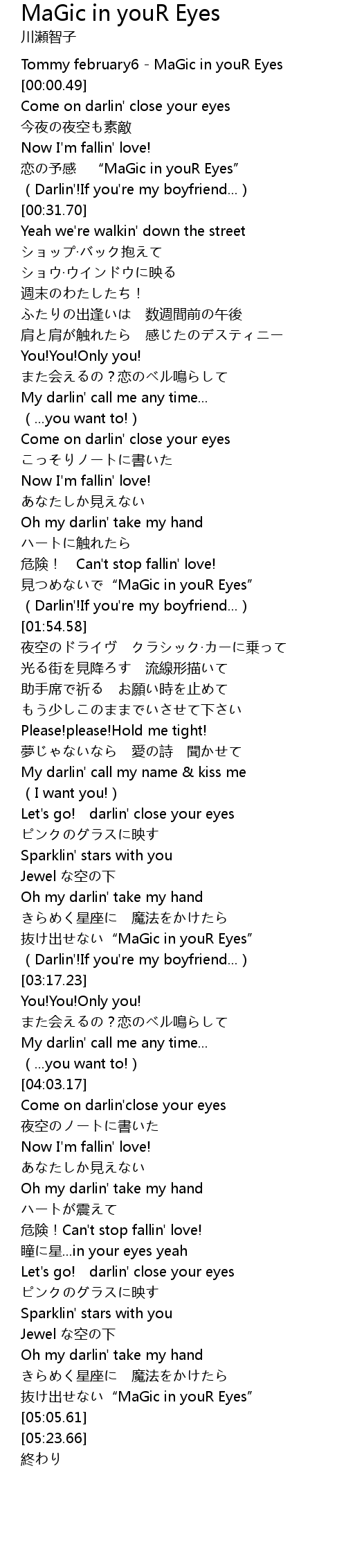 | [00:00.00] | Tommy february6 MaGic in youR Eyes |