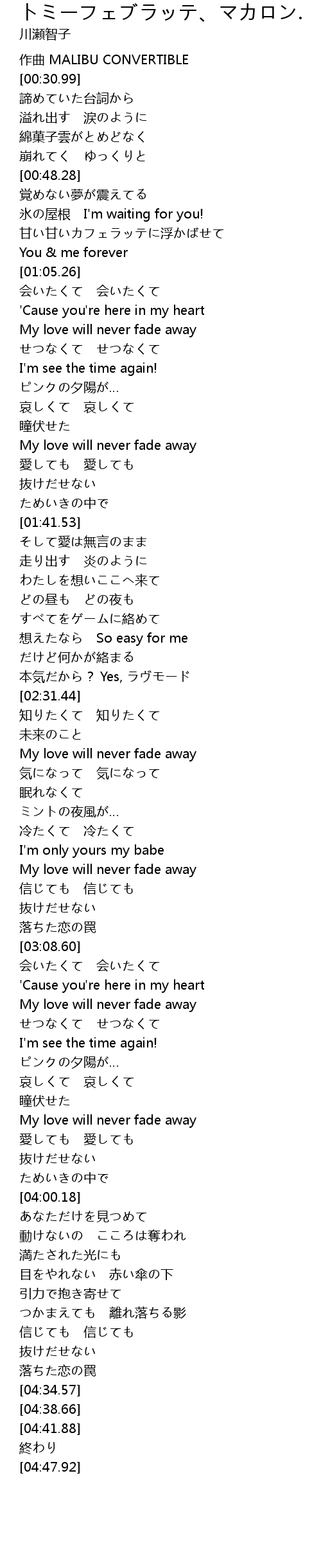 | [00:21.46] | 作曲 MALIBU CONVERTIBLE |