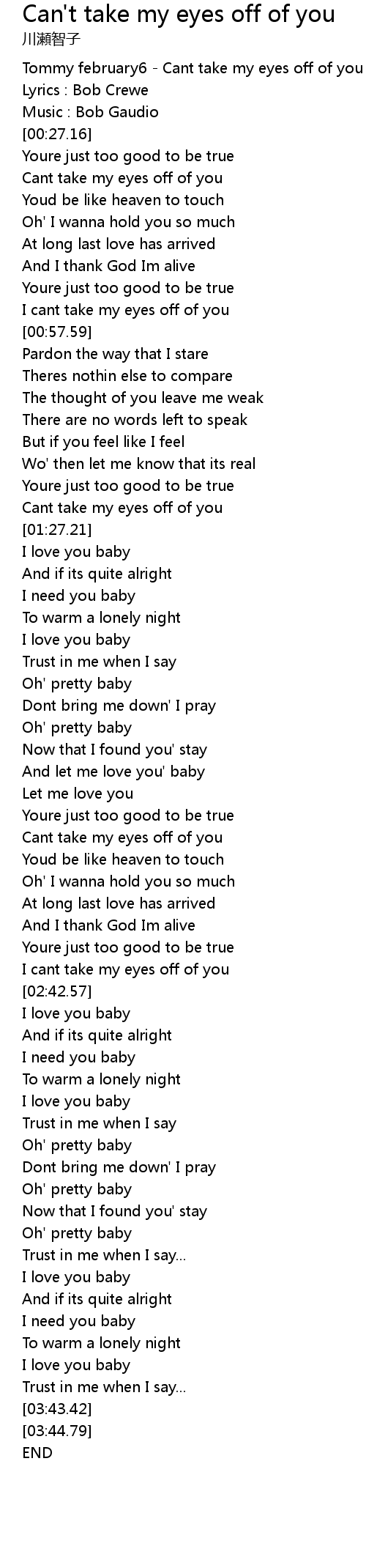 I cant take my eyes off of you |