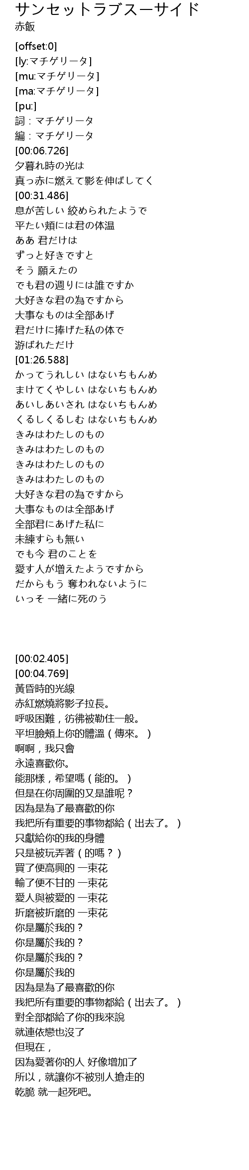 | [00:02.405] | 詞:マチゲリータ |
