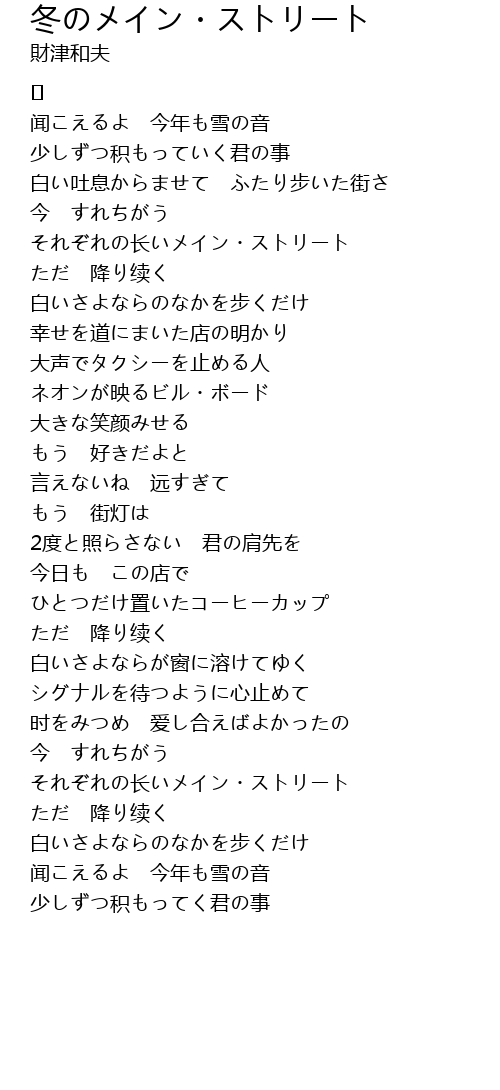 | Song | 冬のメイン・ストリート |