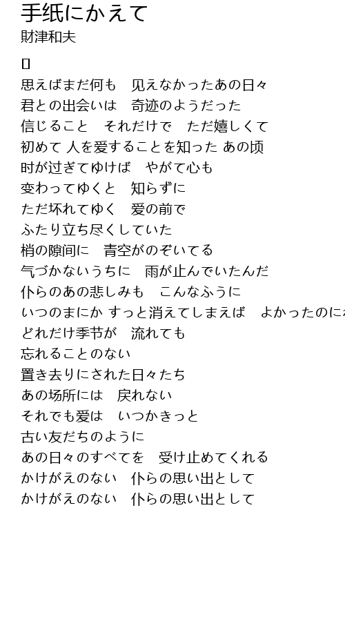 | Song | 手纸にかえて |