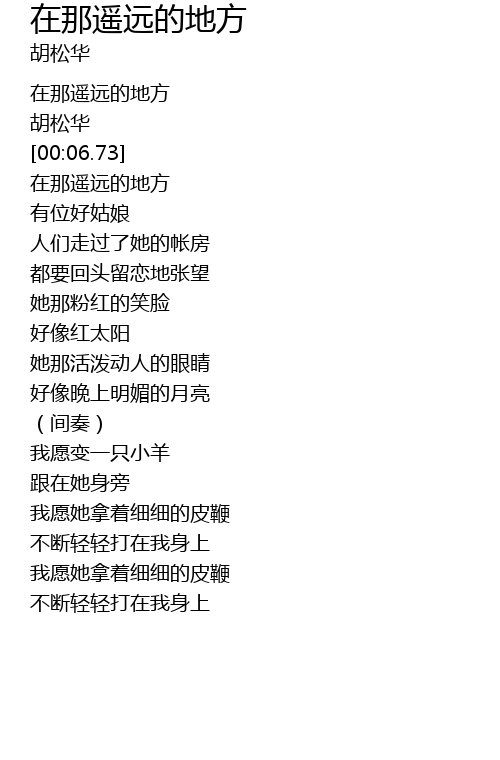 | [00:01.29] | zài nà yáo yuǎn de dì fāng |