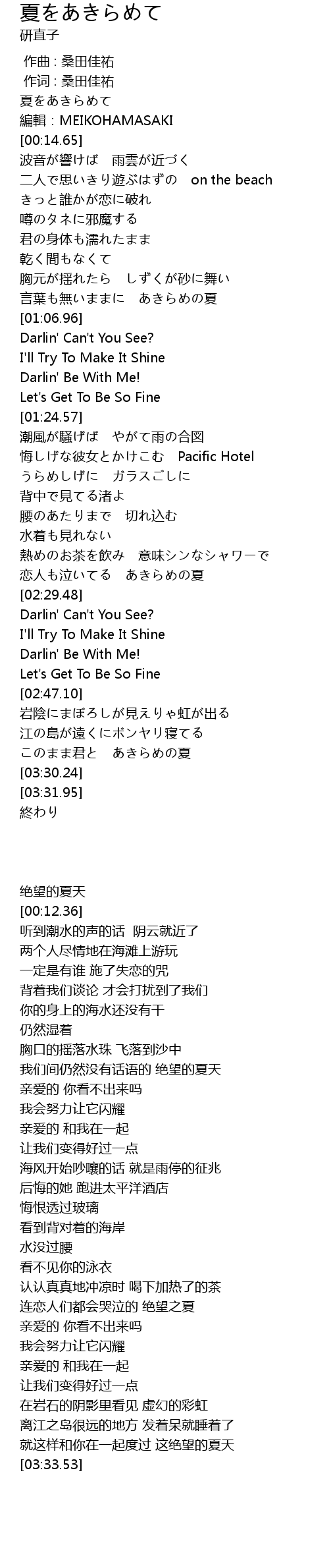 | [00:59.65] | 言葉も無いままに あきらめの夏 |
