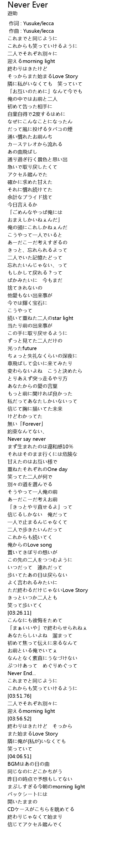 | [00:00.000] | 作词 : Yusuke/lecca |
