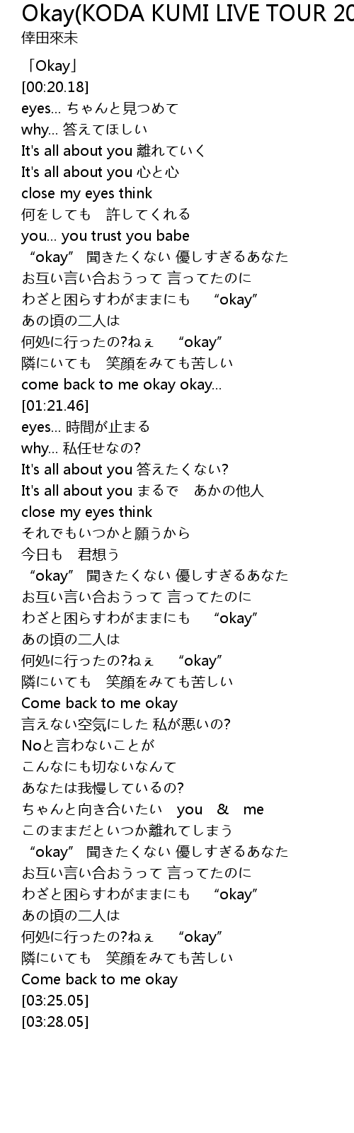 | [03:04.37] | わざと困らすわがままにも “okay” |