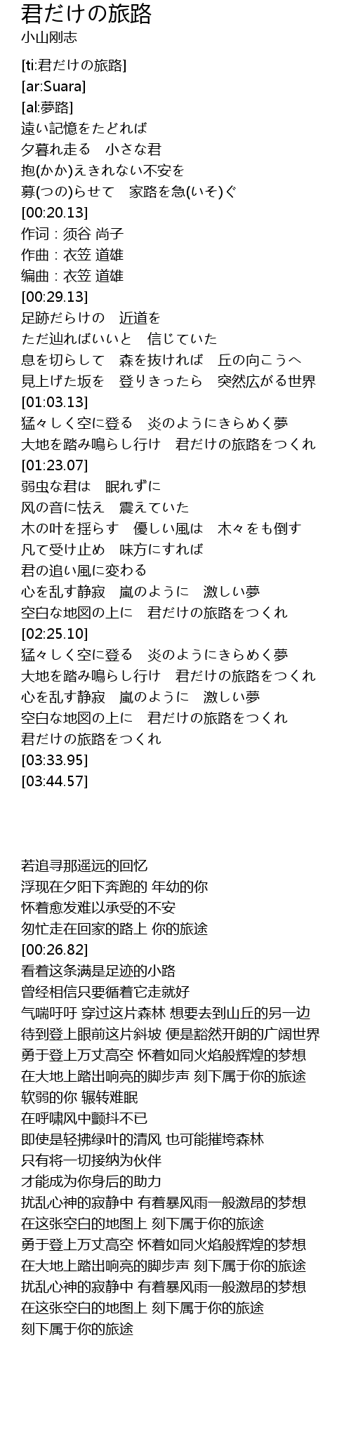 | [03:25.32] | 君だけの旅路をつくれ |