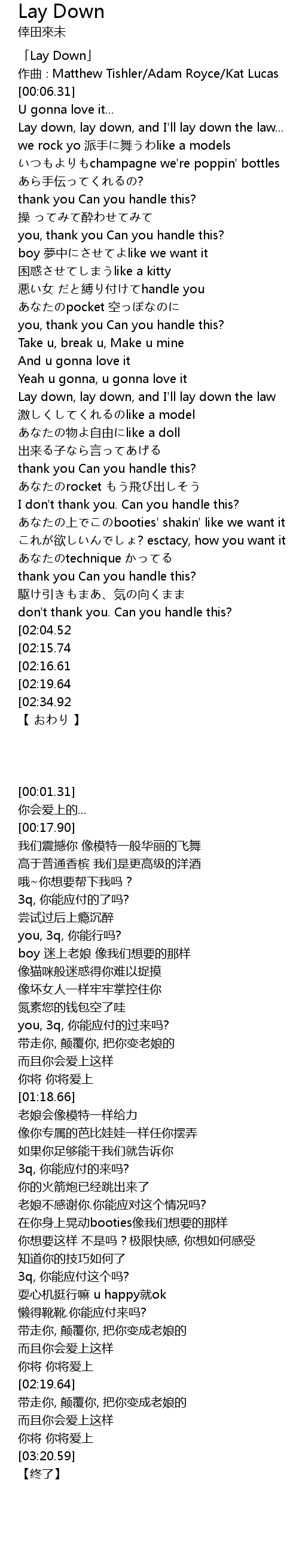 | [00:01.31] | 「Lay Down」 |