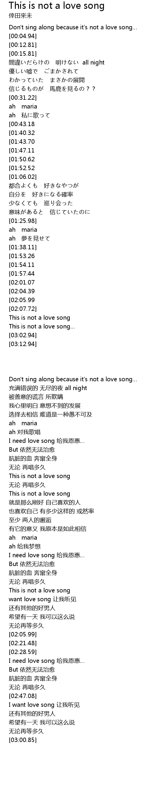 | [03:00.85][02:05.99] | This is not a love song |