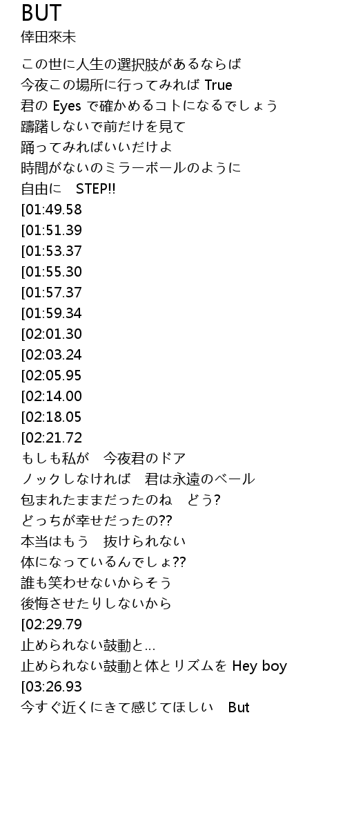 | [00:52.46][01:59.34][02:53.41][03:09.21] | But 目をふさいでる |