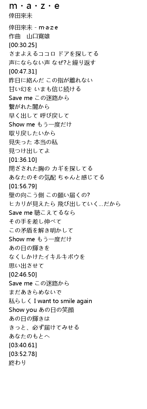 | [00:00.00] | 倖田來未 - m·a·z·e |