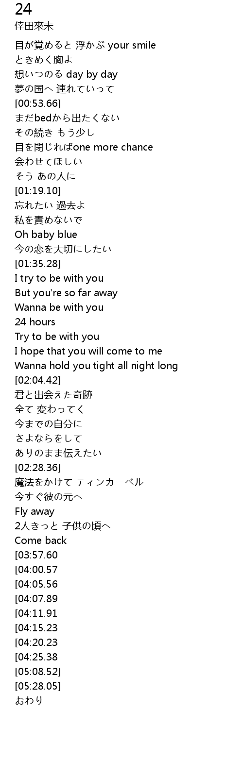 | [04:36.94][04:07.89][02:55.16] | 24 hours |