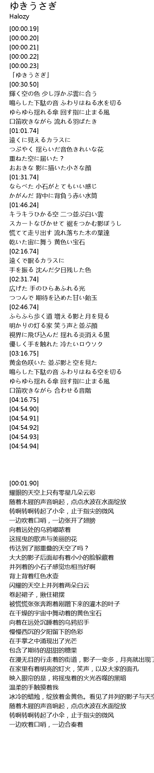 | [00:53.75] | 口笛吹きながら 流れる羽ばたき |