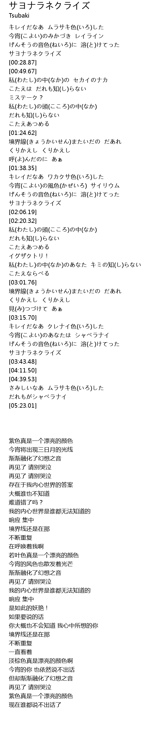 | [03:36.80] | サヨナラネクライズ |