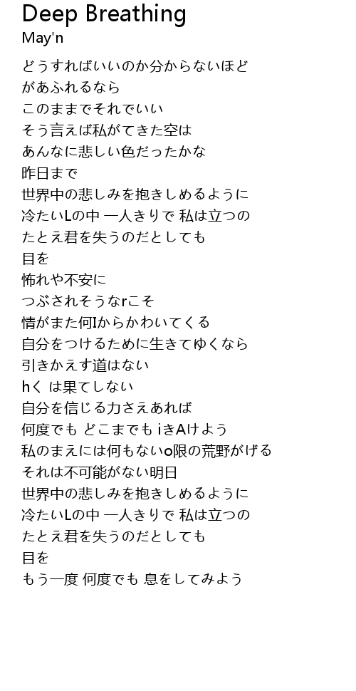 | [02:05.69]目を] | じて 胸深く 息をしてみよう |