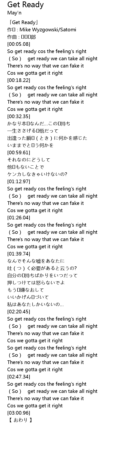 | [00:01.08] | 「Get Ready」 |