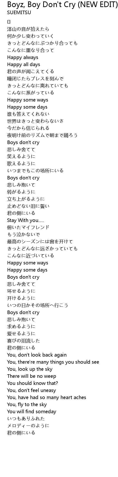 | Song | Boyz, Boy Don't Cry (NEW EDIT) |