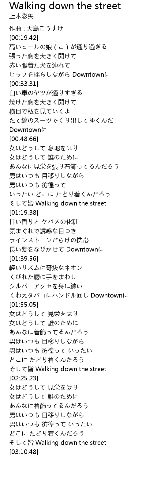 | [03:05.97] | そして皆 Walking down the street |