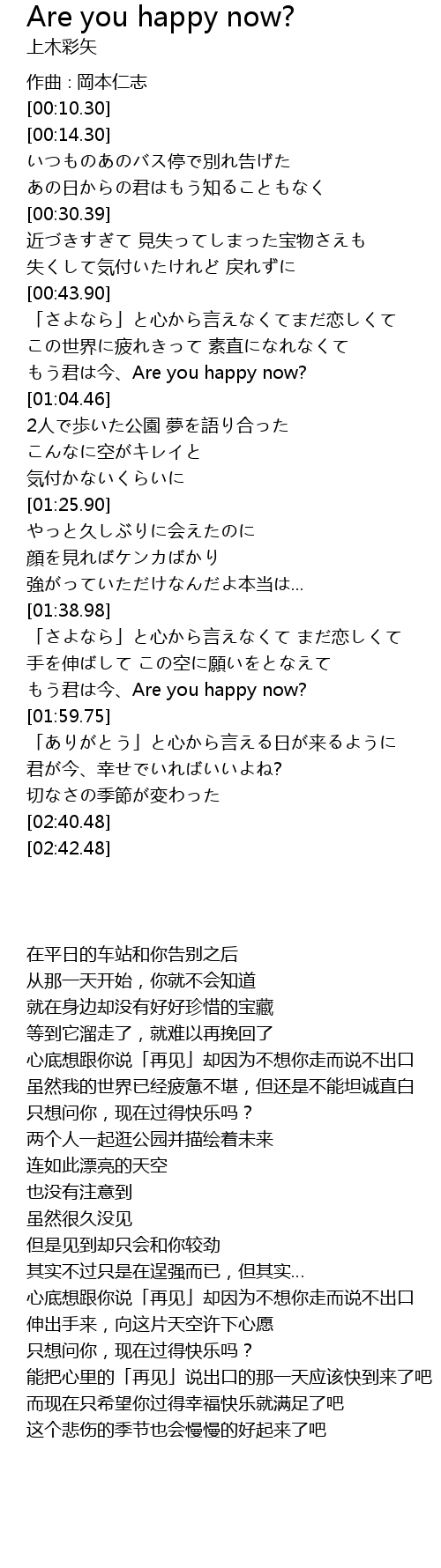 | [00:58.99] | もう君は今、Are you happy now? |
