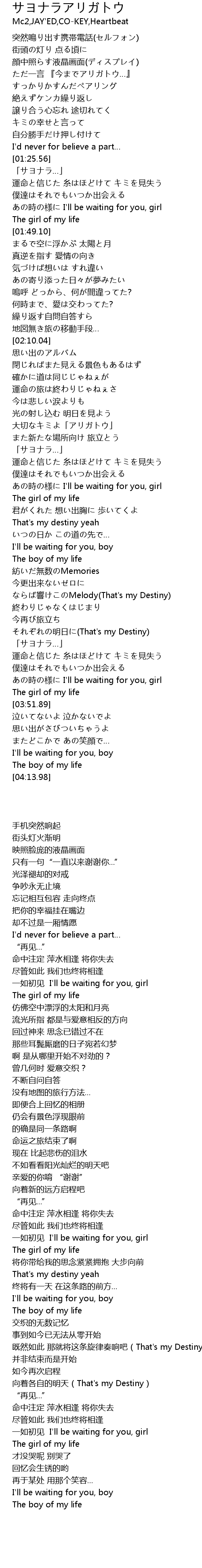 | [03:26.56] | それぞれの明日に(That's my Destiny) |