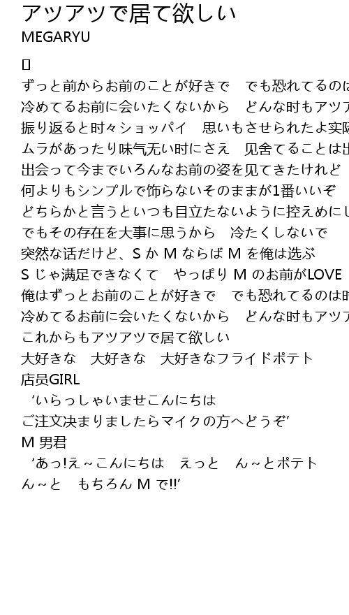 | 冷めてるお前に会いたくないから どんな时もアツアツで居てくれ | |