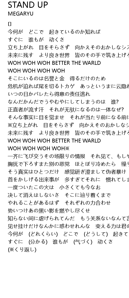 | 立ち上がれ 目をそらさず 向かえそのおかしなシステム | |